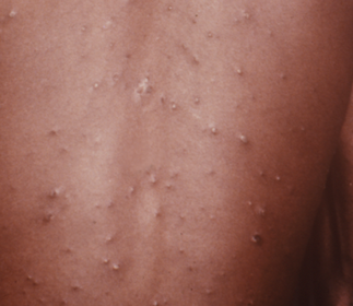 برجستگیهای کوچک، سفت و همرنگ پوست میتواند زگیل آبکی یا مولوسکوم کونتاژیوزوم باشد. این لکهها میتوانند همرنگ پوست اطراف، تیره تر از پوست اطراف یا صورتی باشند.